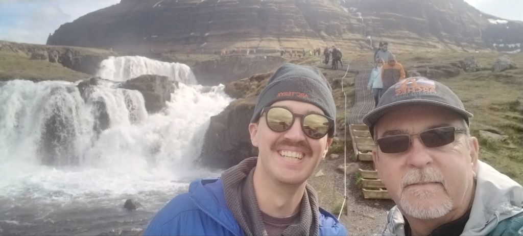 On Sunday evening, we visited the Snæfellsnes Peninsula, staying at the Lava Resort in Miðhraun. We enjoyed a thermal soak, and Wes took a cold plunge in a nearby pond. Dinner was lovely—a special vegan meal prepared for my son, while I enjoyed local lamb and roasted vegetables. The next morning, we took in the sights under what I’d call “changeable” weather—rainy, cloudy, windy, with moments of sun, and then more rain. One local asked about our touring. When we said we had just left the Golden Circle, he smiled and replied, “Ah, and you’ve come to the Diamond Circle today.” It truly was an amazing place—when the sun came out, the land and people shined.